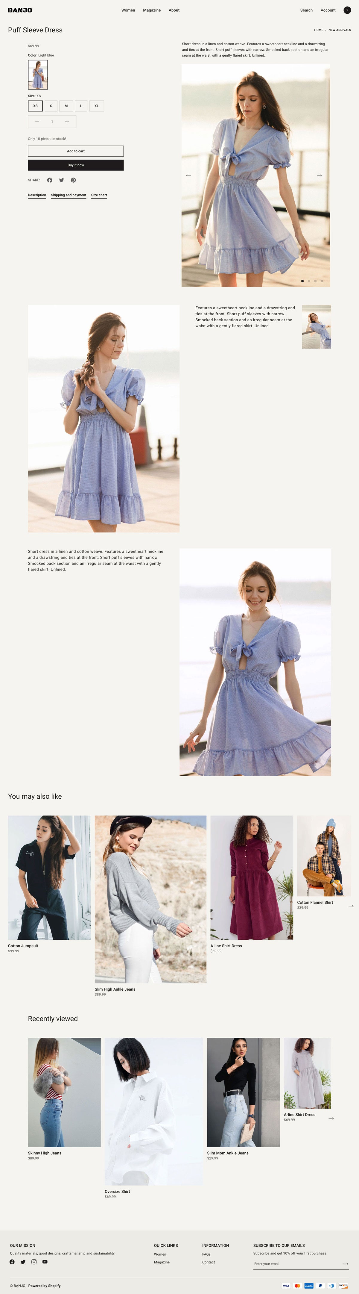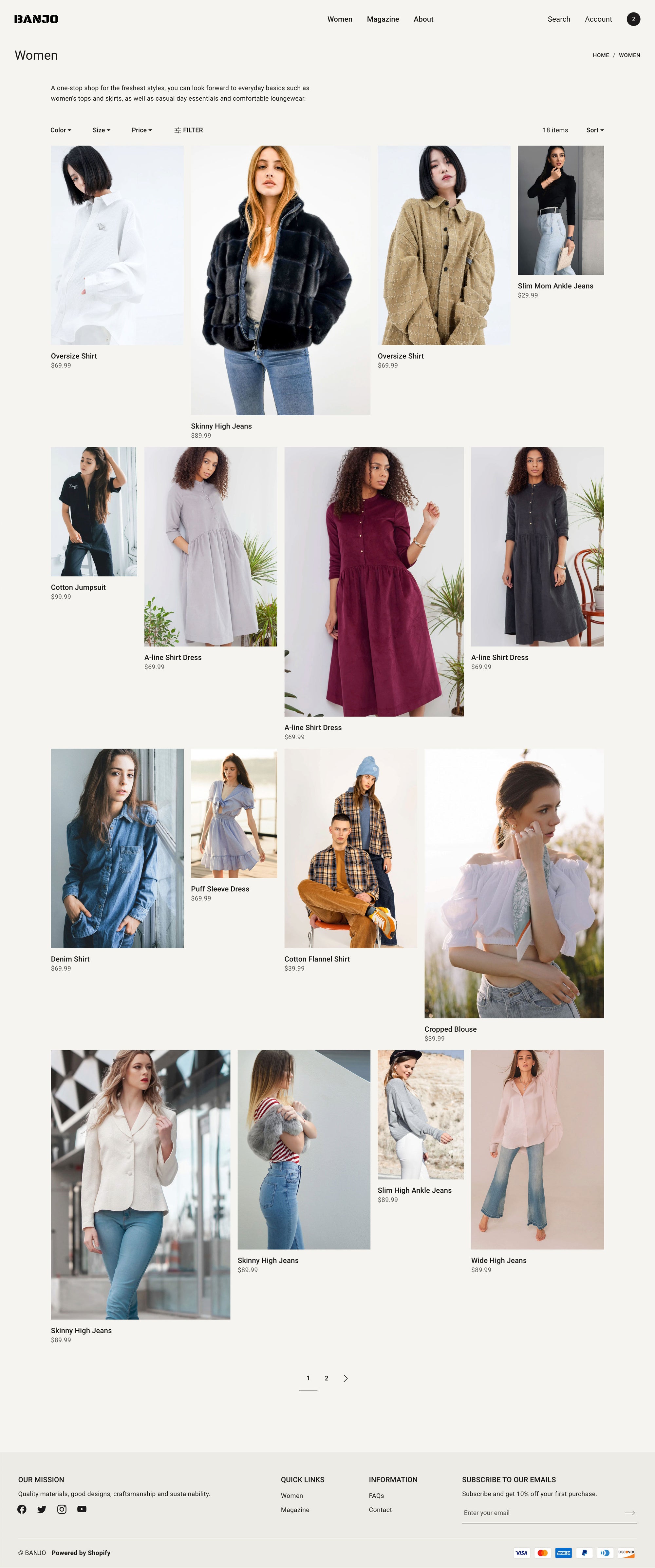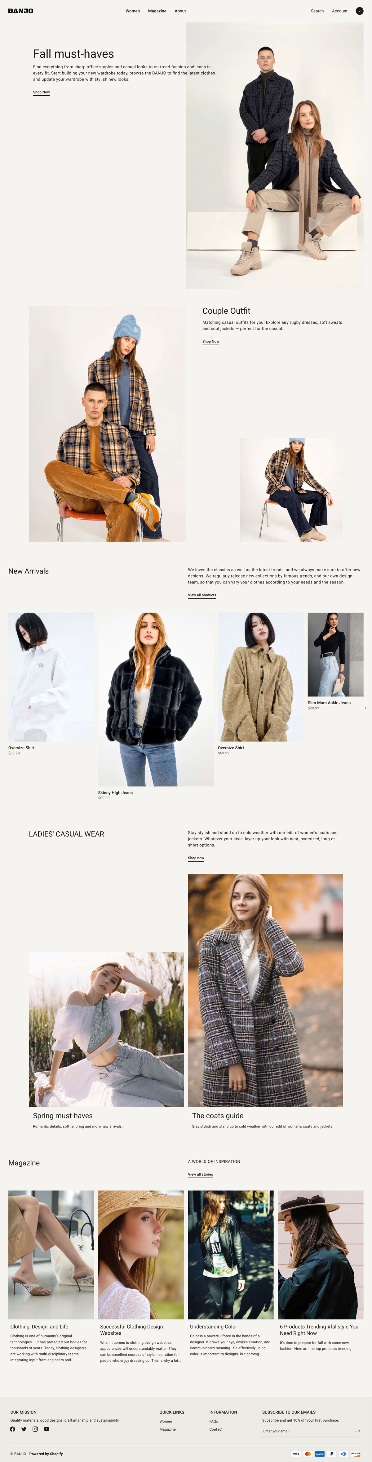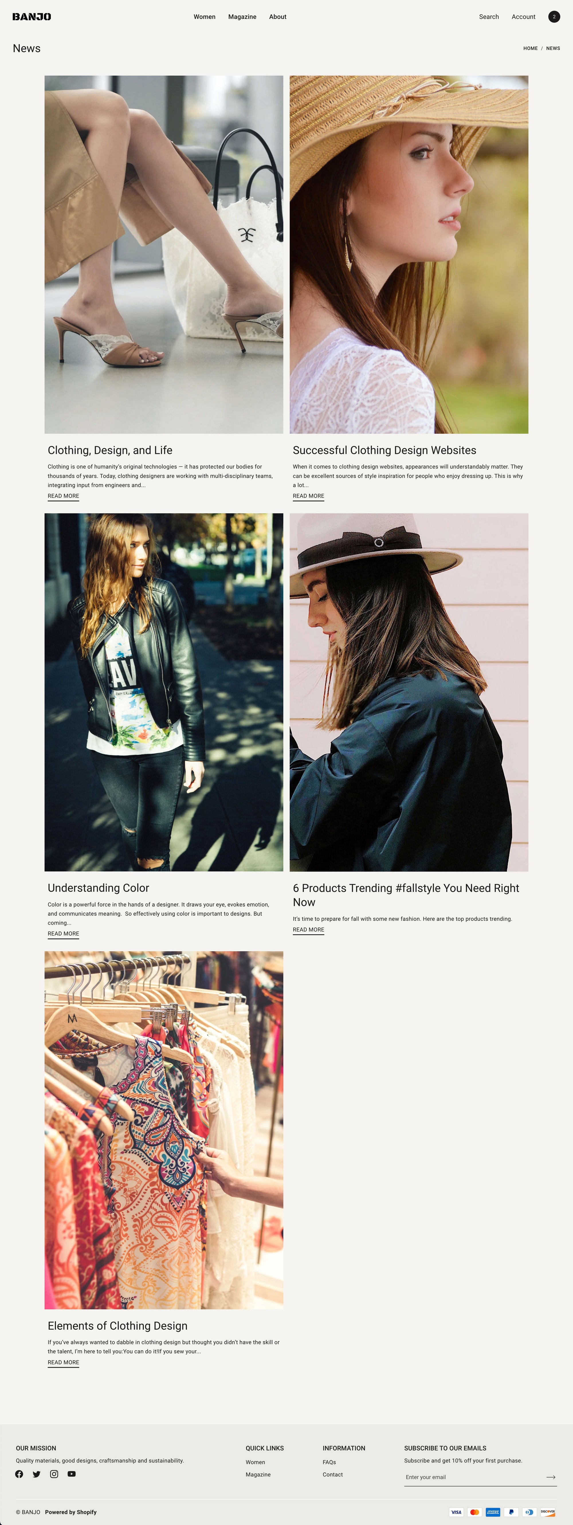 Clothing & Fashion Responsive Shopify Theme. Perfect for clothing, swimwear, fashion, accessories, outerwear, fitness, footwear, luggage & beauty. Loaded with all the tools you need: SEO, speed, performance, flexible sections, advanced product filters and much more.