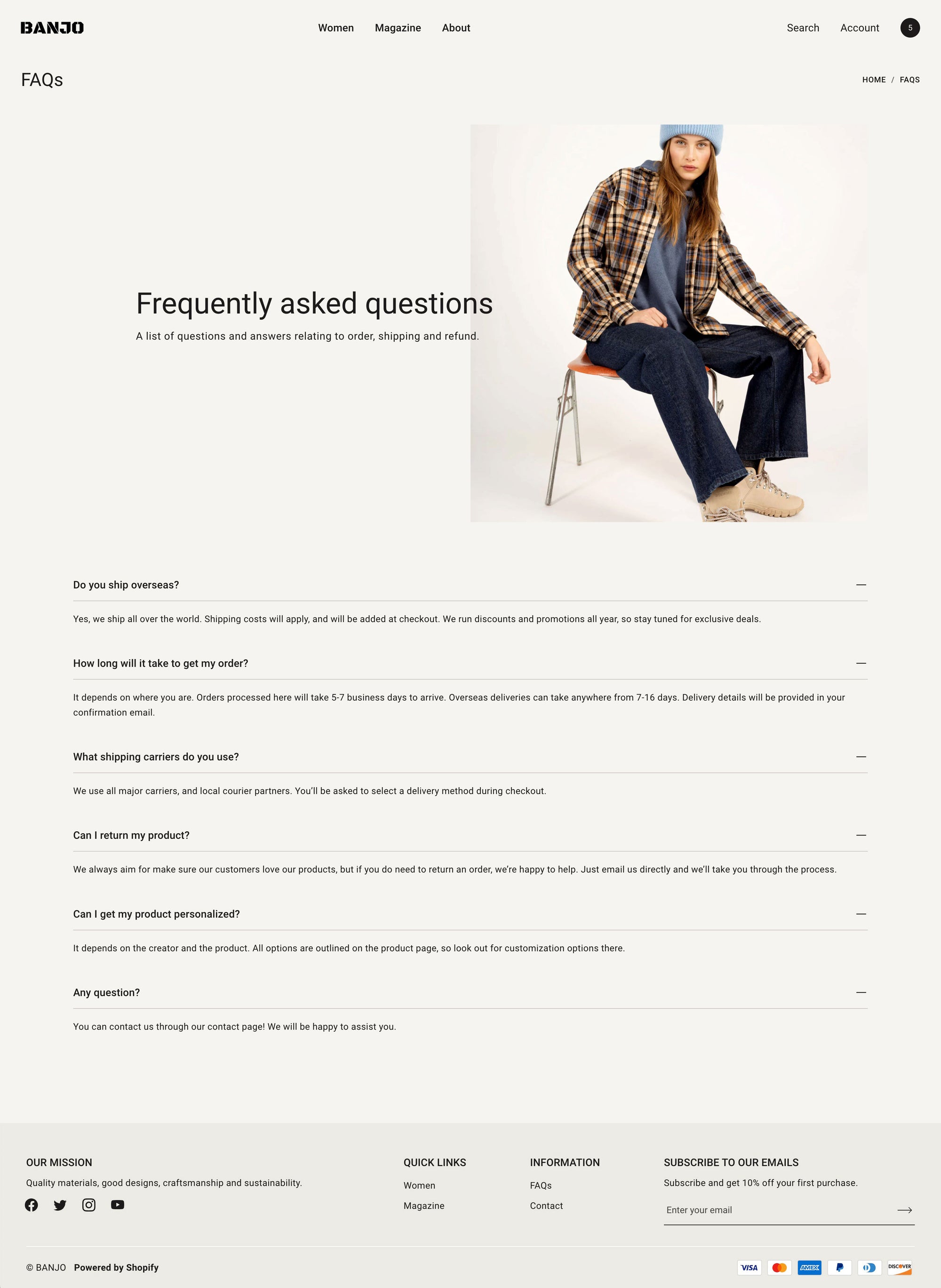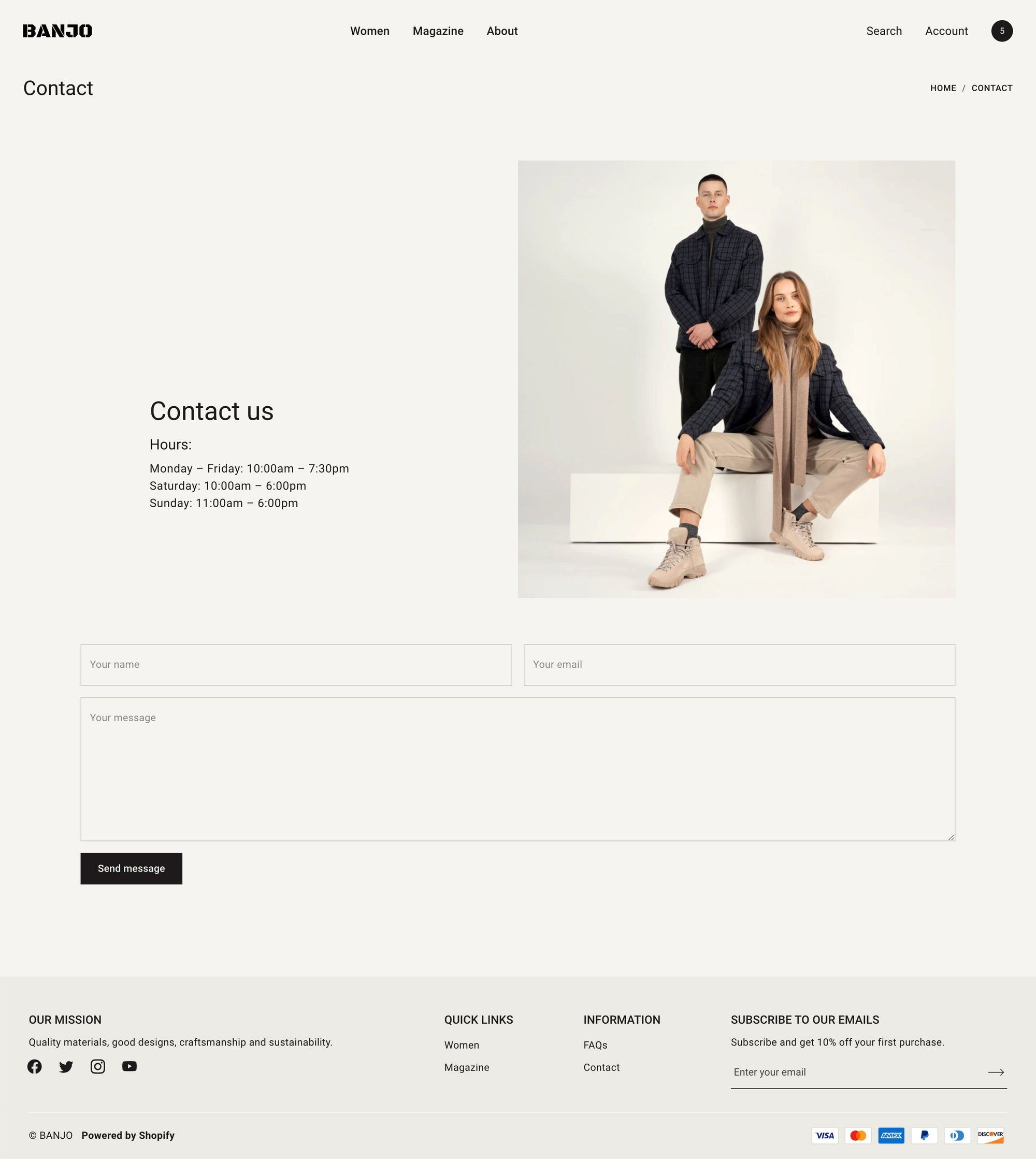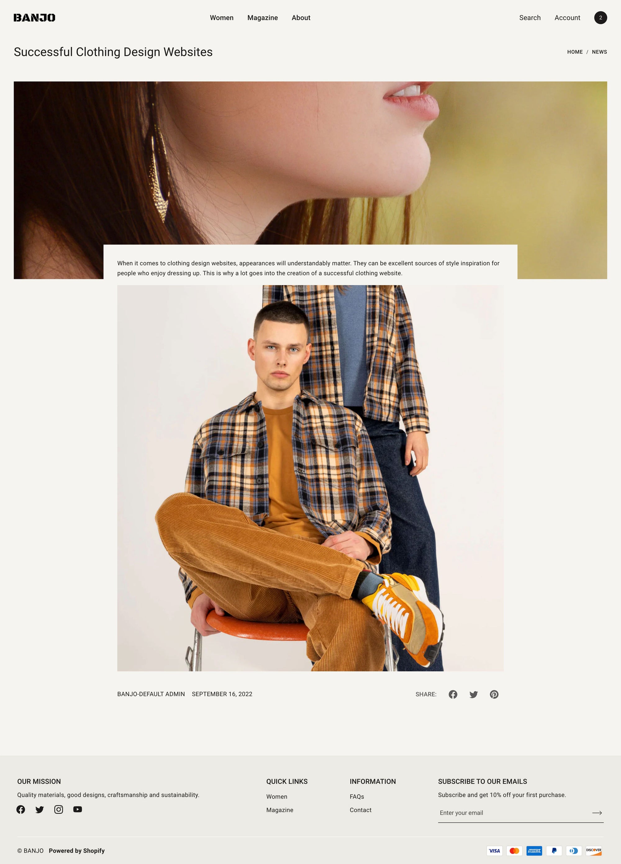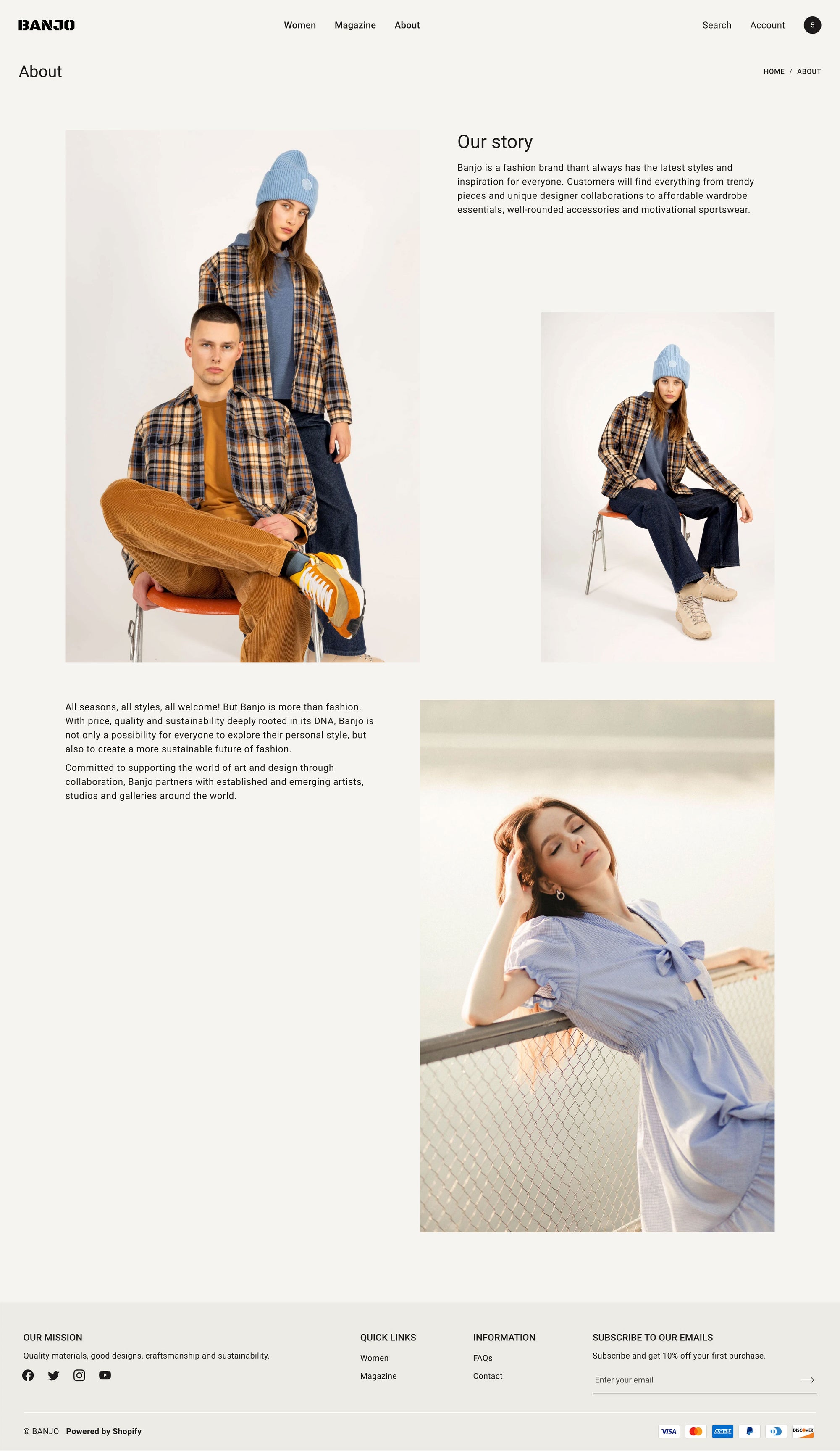 Clothing & Fashion Responsive Shopify Theme. Perfect for clothing, swimwear, fashion, accessories, outerwear, fitness, footwear, luggage & beauty. Loaded with all the tools you need: SEO, speed, performance, flexible sections, advanced product filters and much more.